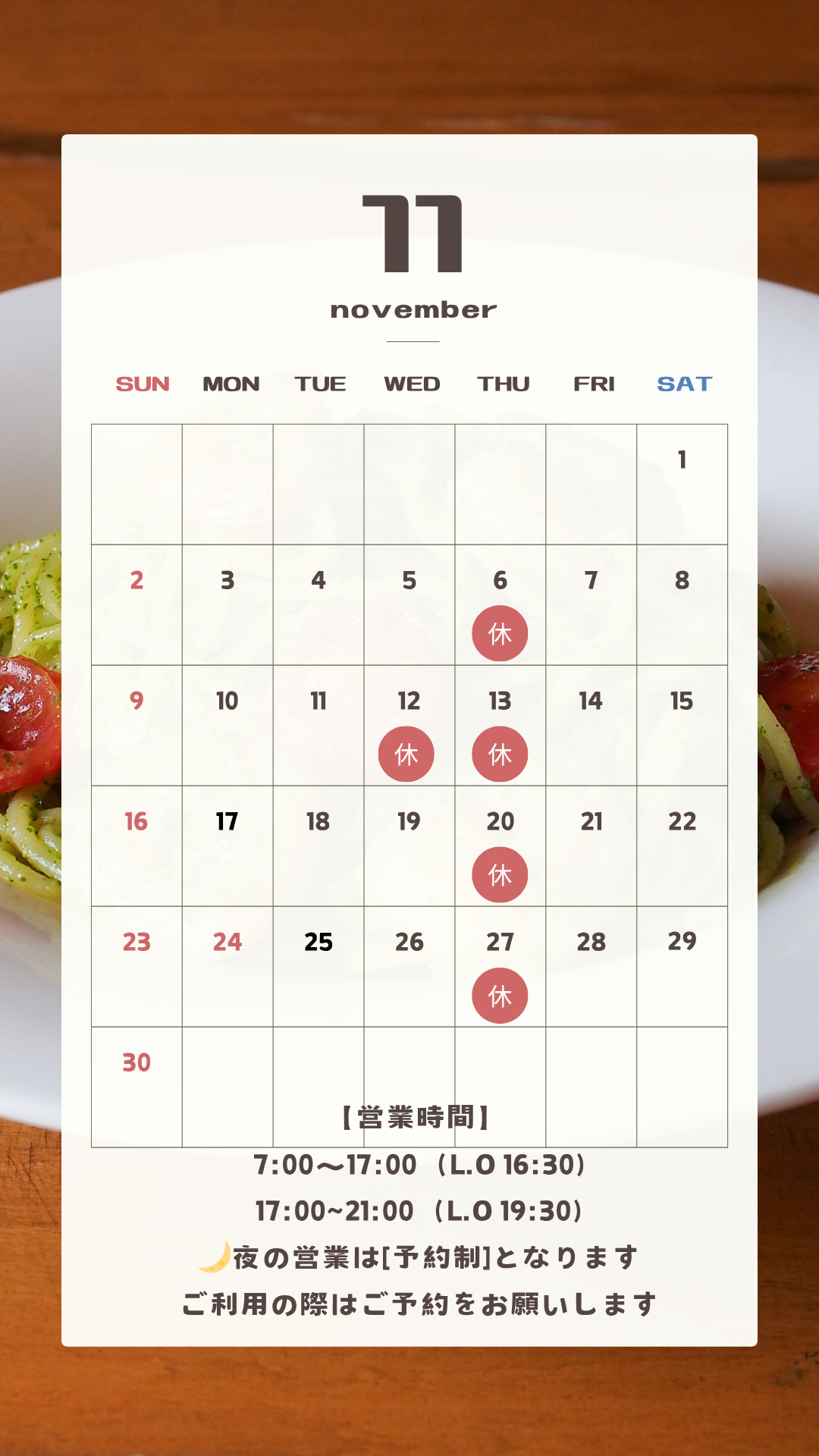 🕠営業時間:17:30〜21:00(L.O 19:30)