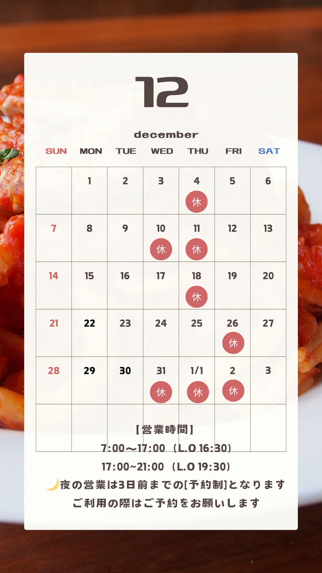 【12月の営業日のお知らせ】