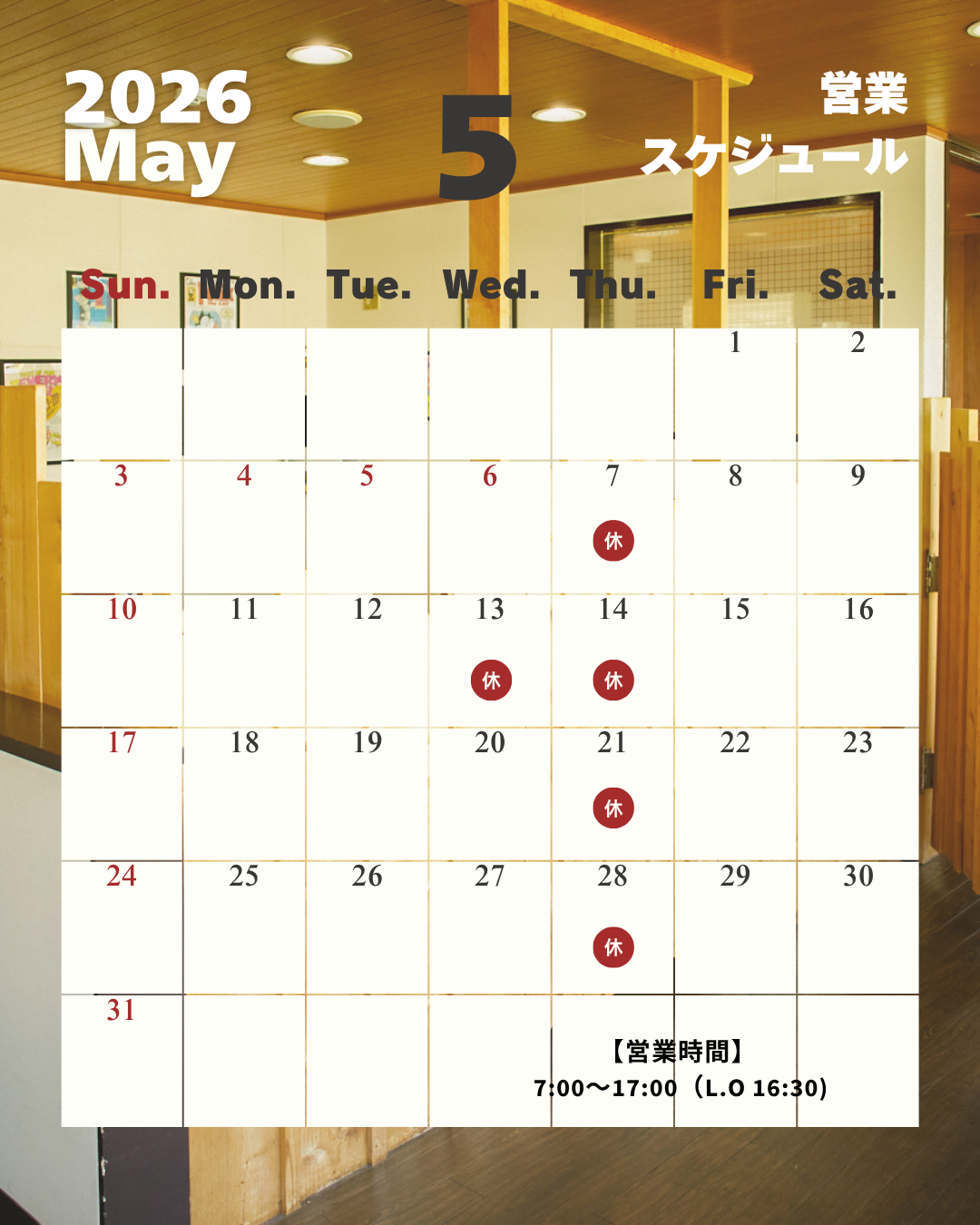 5月 営業日のお知らせ